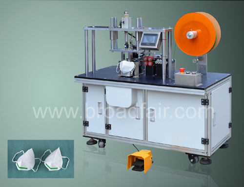 为立体口罩熔接鼻梁条机器,只需要一人协助固定点焊的位置,鼻线自动入料及切断并熔接,操作简单,省工省时。此款机器亦适用于杯型口罩的鼻线熔接。